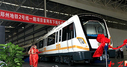 6月29日下午,從中國南車株洲電力機車有限公司傳出消息,鄭州地鐵2號線一期工程首列車已經下線。從曝光的圖片來看,該車與1號線列車的外觀稍有區別,車身的紅色噴繪換成了黃色。據悉,該車更節能環保。