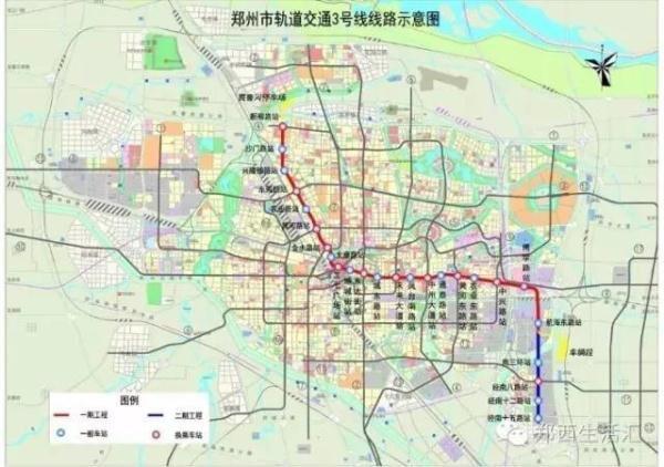 鄭州地鐵3號(hào)線(M3)二期工程為一期工程向北、向南延伸,北段起于惠濟(jì)區(qū)毛莊鎮(zhèn)天山路站,沿綠洲路、天河路、長(zhǎng)興路走行,接入一期工程起點(diǎn)新柳路站;南段起于一期工程終點(diǎn)航海東路站,沿經(jīng)開(kāi)第十七大街、第十五大街走行,南止于經(jīng)南十七路站。北段線路長(zhǎng)約9.5千米,設(shè)站5座;南段線路長(zhǎng)約6.65千米,設(shè)站5座;二期線路合計(jì)長(zhǎng)約16.15千米,均為地下線,10座車站均為地下站。2016年12月開(kāi)工,2020年12月底通車試運(yùn)營(yíng)。