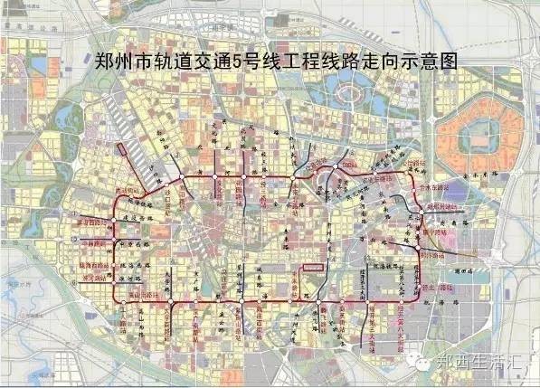 鄭州地鐵5號(hào)線(M5),沿黃河路、商務(wù)外環(huán)路、龍湖外環(huán)路、盛和街、心怡路、經(jīng)開(kāi)第十大街、航海路、桐柏路、西站路等布置,覆蓋鄭州中心城區(qū),屬于城市核心區(qū)外圍邊緣的環(huán)形線路。線路全長(zhǎng)40.7公里,均為地下線,全線共設(shè)車站32座,其中換乘站15座,站間距為1.4公里。站點(diǎn)具體為:西站街站、沙口路站、南陽(yáng)路站、文化路站、花園路站、經(jīng)三路站、未來(lái)北路站、眾意路站、CBD站、農(nóng)業(yè)東路站、心怡路站、金水東路站、鄭州東站、康寧路站、鄭汴路站、經(jīng)北二路站、經(jīng)開(kāi)第八大街站、經(jīng)開(kāi)第三大街站、商英街站、騰飛路站、未來(lái)路站、魏莊西街站、紫荊山路站、馮莊路站、京廣南路站、大學(xué)南路站、嵩山南路站、工人路站、淮河路站、隴海西路站、中原路站、建設(shè)西路站。2016年7月底前完成征遷工作,2019年12月底前通車試運(yùn)營(yíng)。