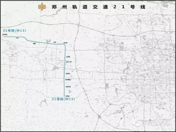 鄭州地鐵21號(hào)線(M13),起始于上街機(jī)場(chǎng),終點(diǎn)至生命谷南路,線路全長(zhǎng)26.8公里,全線共設(shè)15座車站,站間距為1.9公里,功能定位為鄭州西部新城加密線。