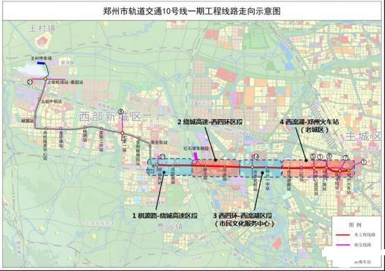 公示信息顯示,鄭州市軌道交通10號線一期工程(以下簡稱10號線一期工程)位于滎陽市、須水鎮、市民文化服務中心及老城區區域內,線路沿中原路和康復后街布置,起于鄭州西站,止于鄭州火車站,線路全長約21.625km,設站12座,均為地下站。本工程設車輛段一座,新建主變電站一座。