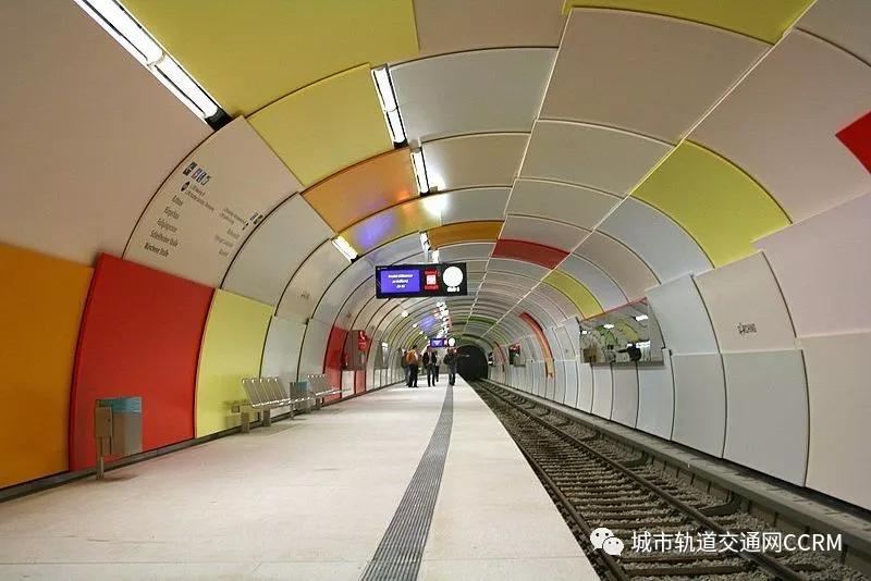 慕尼黑大部分的地鐵站都是無屏蔽門的,部分地鐵站是無柱洞穴的設計,并且留有導人天然光的光井,此外還擁有墻面桿狀反射涂層以導人天然光到站臺區域,給乘客寬敞明亮的感受。
